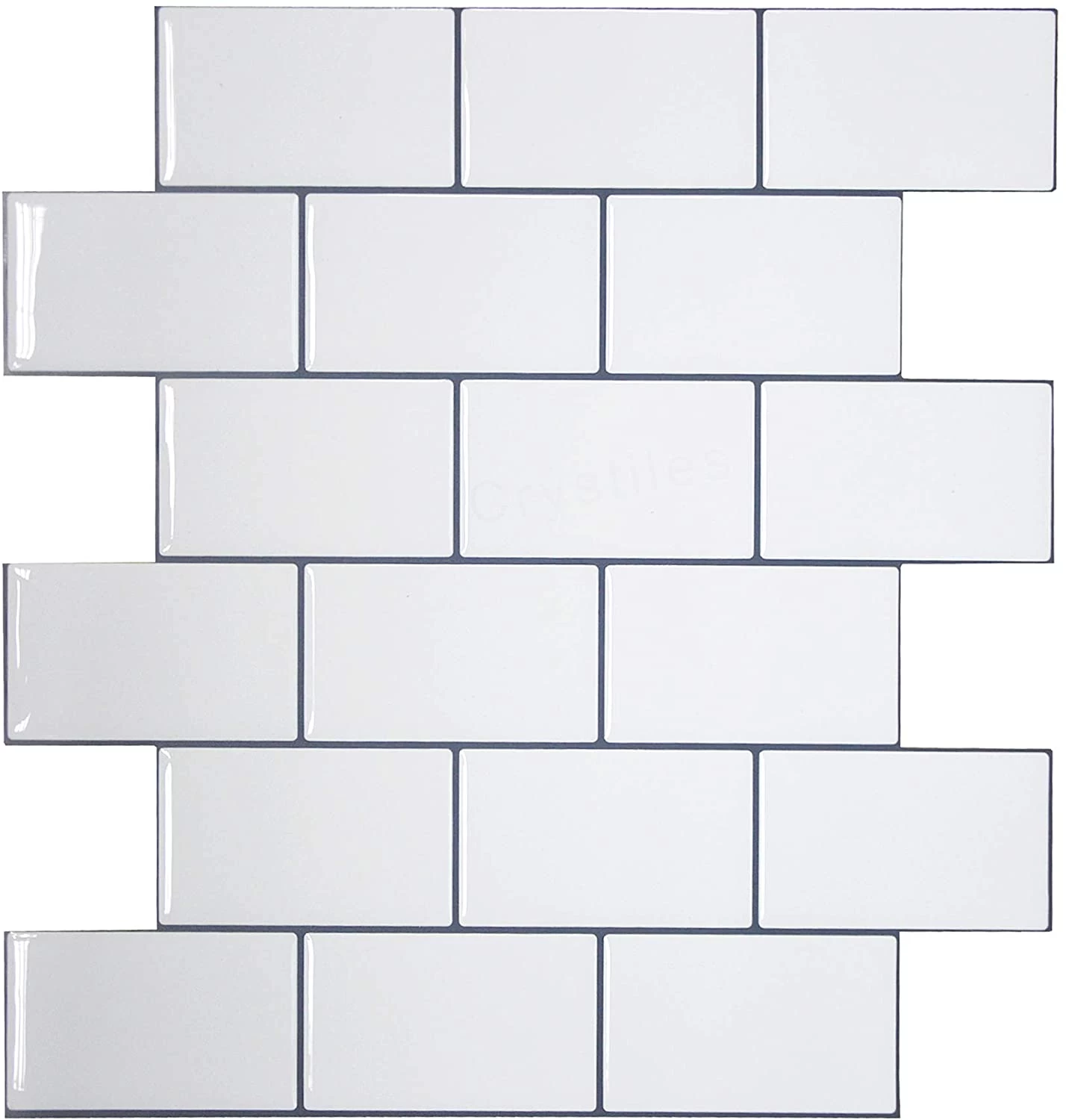 - 12″ X 12″, 4-Sheet pack. Tile Color: Subway White. Grout Color: Gray.