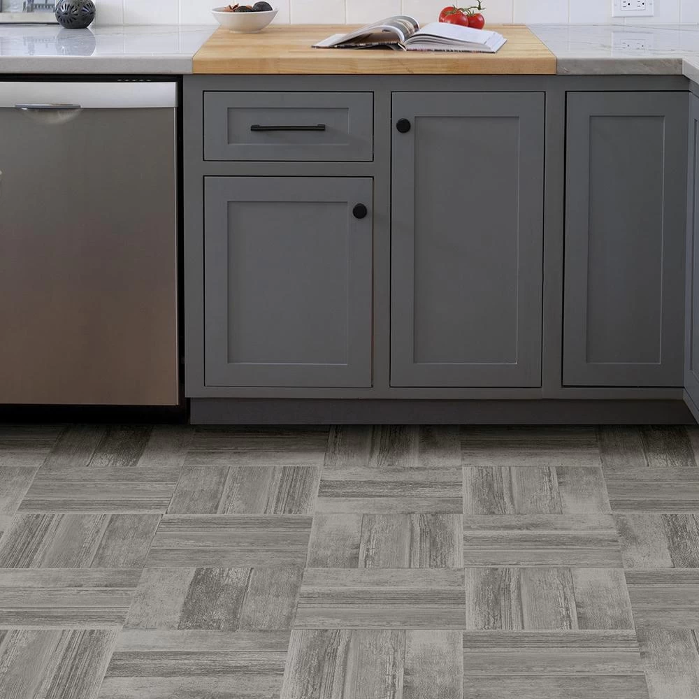With faded accents and grain details, these peel and stick tiles have the realistic look of wood. Their varying shades of grey will complement a variety of decor styles. Vanleer Peel and Stick Floor Tiles contains 20 pieces on 20 sheets that each measure 12 in. x 12 in.