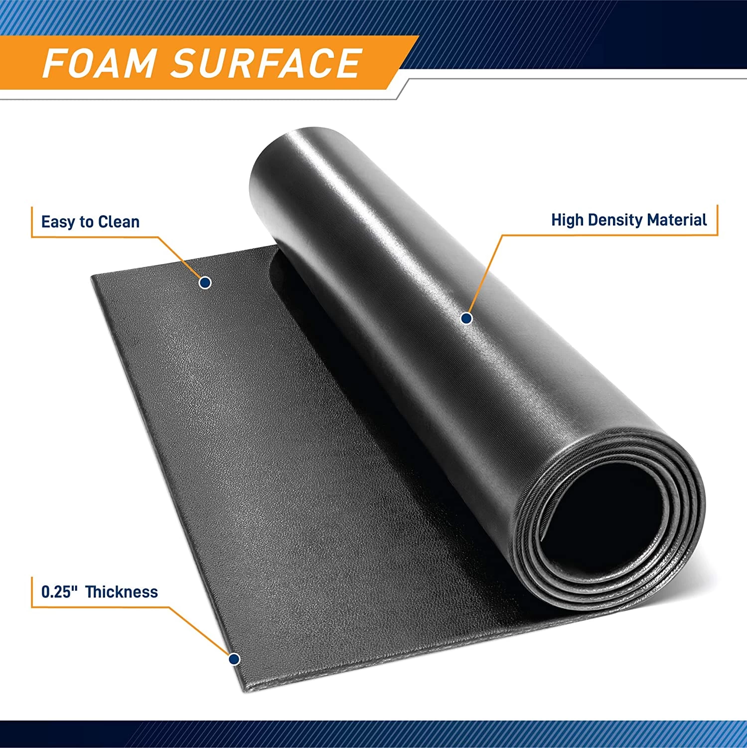 - STABILIZES MACHINES–A matte layer delivers firm placement of exercise machines and features a premium material blend that showcases a non-slip surface. The protective barrier reduces noise and vibration caused by working treadmills, climbers, and steppers