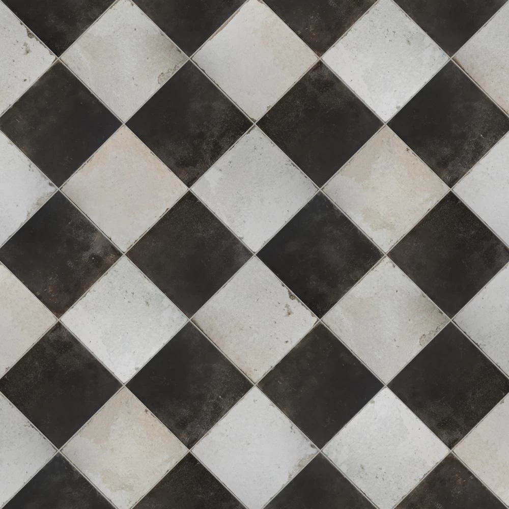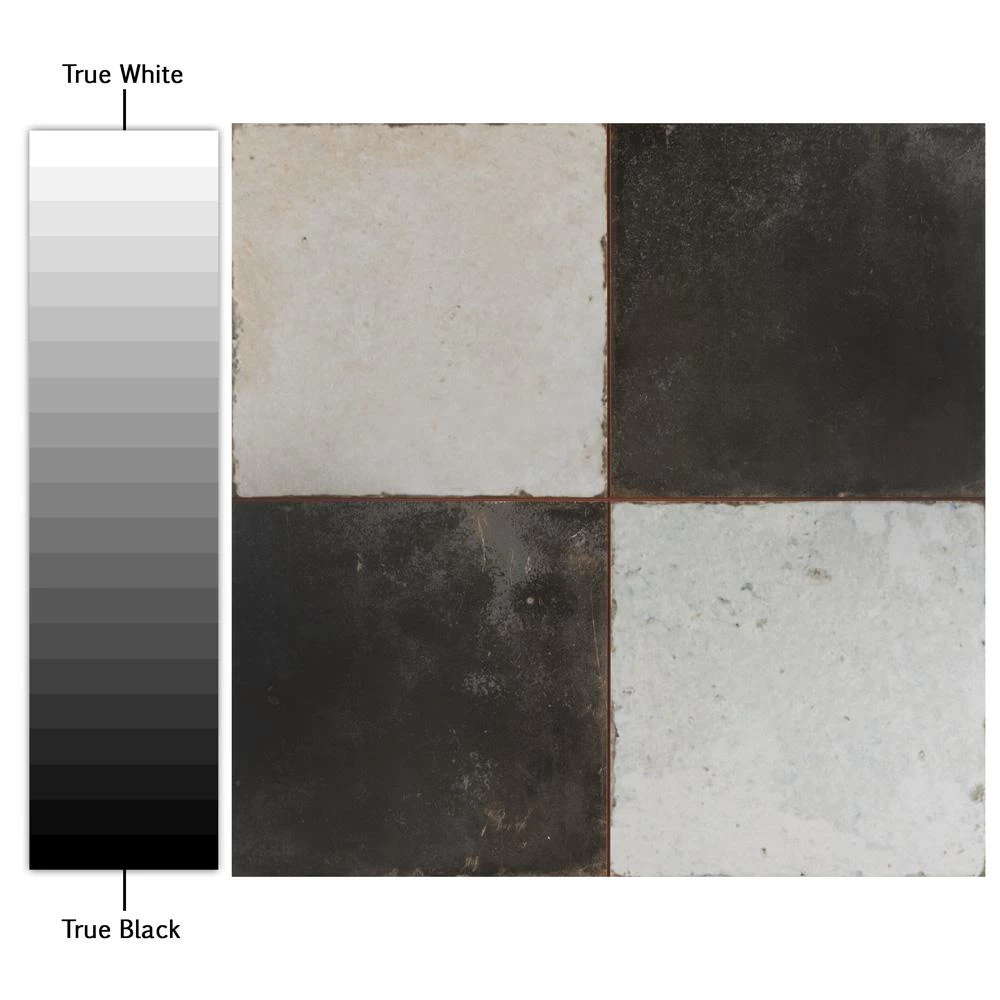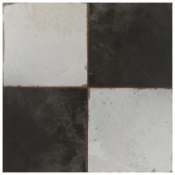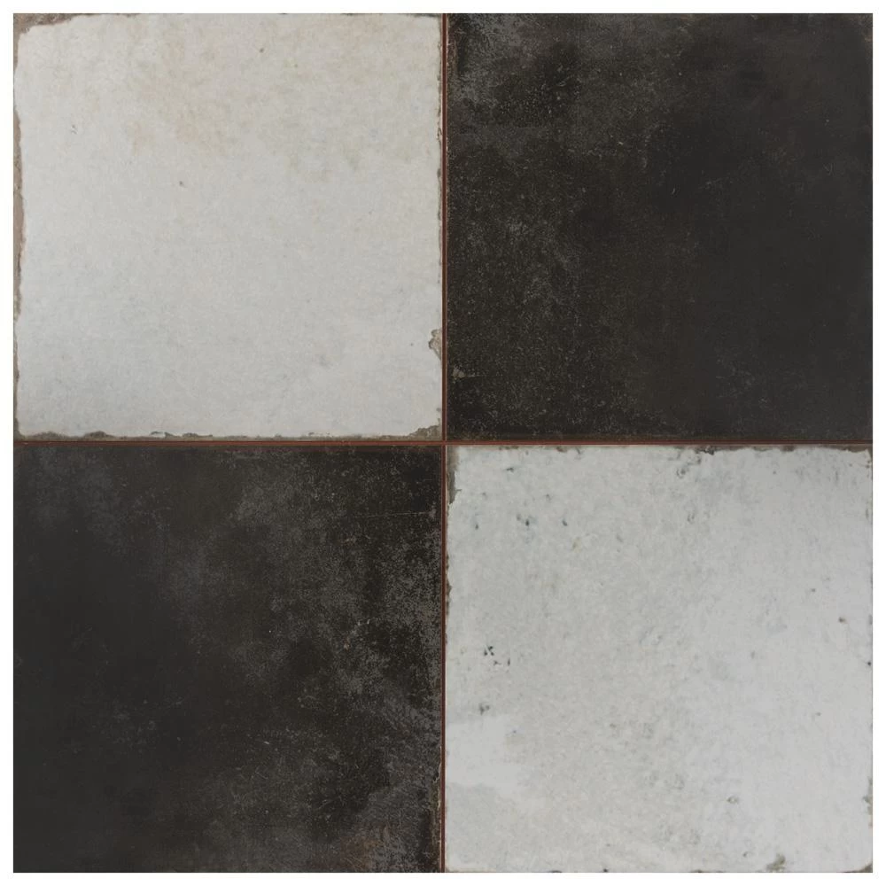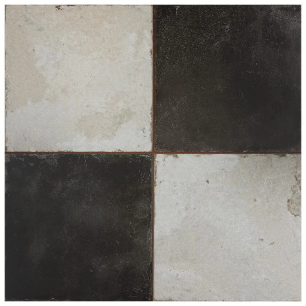 Amplify your decor with the old-world European radiance of the Merola Tile Kings Damero 17-5/8 in. x 17-5/8 in. ceramic floor and wall tile. Designed by interior architect and furniture designer Francisco Segarra, this encaustic-inspired tile is a true reflection of industrial design. The union of simple design and natural beauty are offset by the hand-painted look, a fascinating mix of a grid pattern and soft edges, all in black and white. Producing an antique look for indoor commercial and residential areas, the low-sheen glaze features imitations of the scuffs and spots that are the marks of well-loved, worn, century-old tile. These convincing marks give the tile an aged appearance and rustic charm. There are five different variations of this tile randomly scattered throughout each case. The scored grout lines can be grouted with the color of your choice, or left un-grouted for a rugged finish.