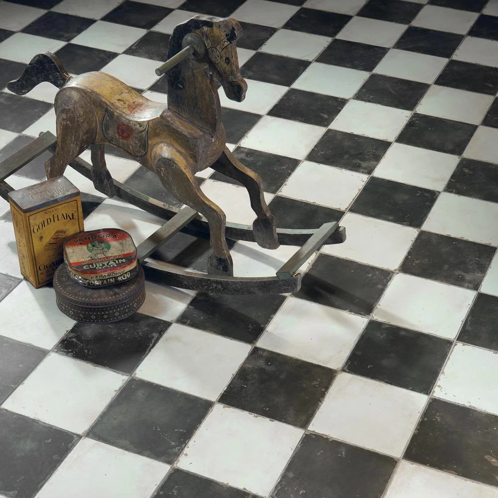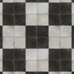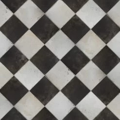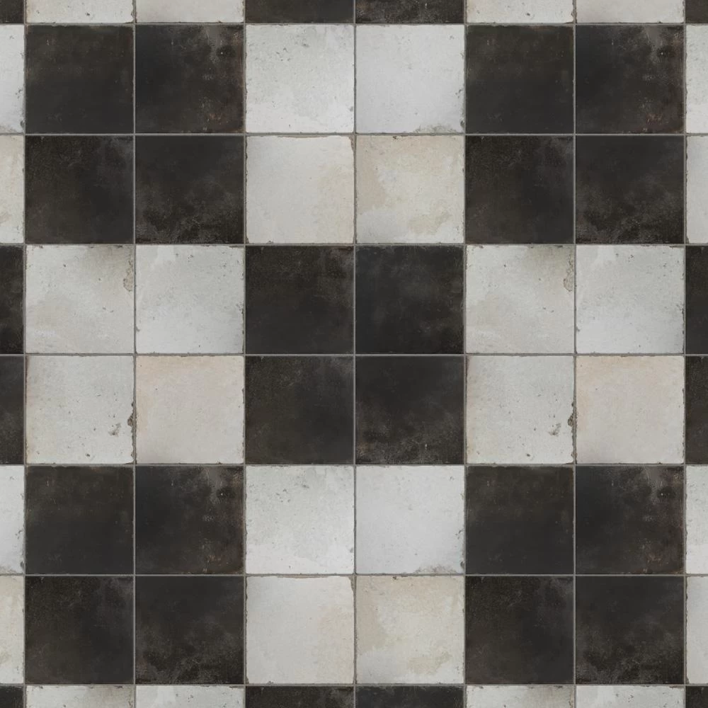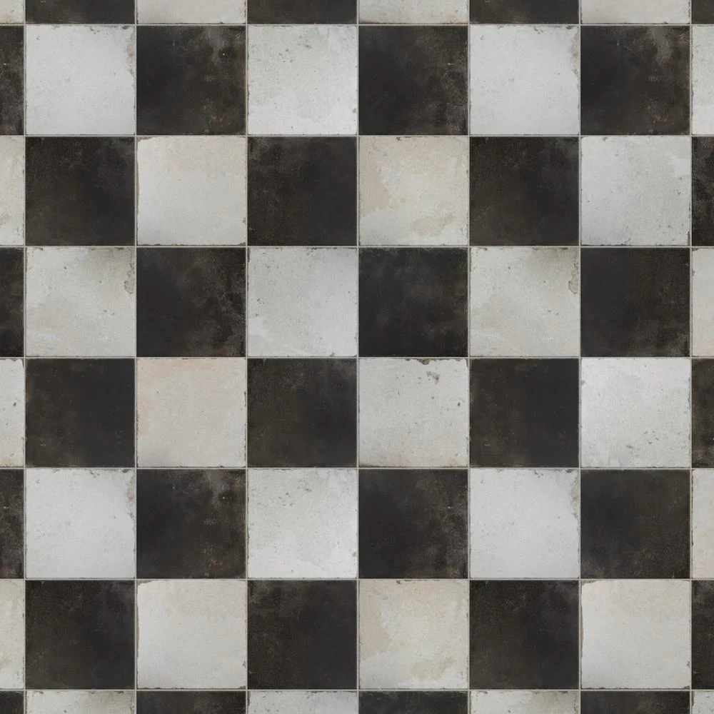 Amplify your decor with the old-world European radiance of the Merola Tile Kings Damero 17-5/8 in. x 17-5/8 in. ceramic floor and wall tile. Designed by interior architect and furniture designer Francisco Segarra, this encaustic-inspired tile is a true reflection of industrial design. The union of simple design and natural beauty are offset by the hand-painted look, a fascinating mix of a grid pattern and soft edges, all in black and white. Producing an antique look for indoor commercial and residential areas, the low-sheen glaze features imitations of the scuffs and spots that are the marks of well-loved, worn, century-old tile. These convincing marks give the tile an aged appearance and rustic charm. There are five different variations of this tile randomly scattered throughout each case. The scored grout lines can be grouted with the color of your choice, or left un-grouted for a rugged finish.