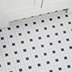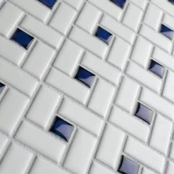 Featuring a classic design, the Merola Tile Spiral Blue and White 12-1/2 in. x 12-1/2 in. x 6 mm Porcelain Mosaic Tile is made of matte white tiles that surround glossy cobalt squares. This tile is great for contemporary renovations or creating Victorian-era style designs. It is suitable for both indoor and outdoor heavy-duty commercial and residential applications, including kitchens, foyers, backsplashes and bathrooms. This tile is perfect on its own or cut into strips as an accent piece for other products in the Spiral series. Tile is the better choice for your space. This tile is made from natural ingredients, making it a healthy choice as it is free from allergens, VOCs, formaldehyde and PVC.