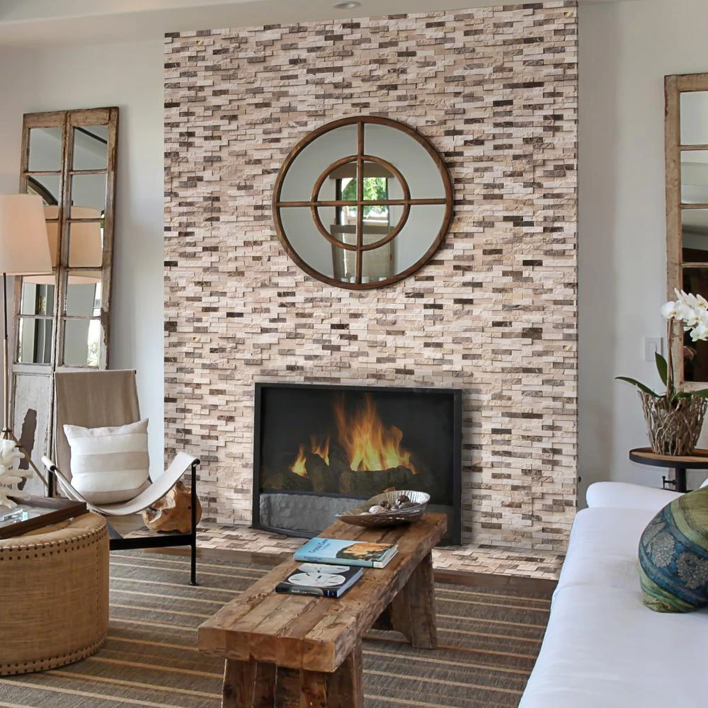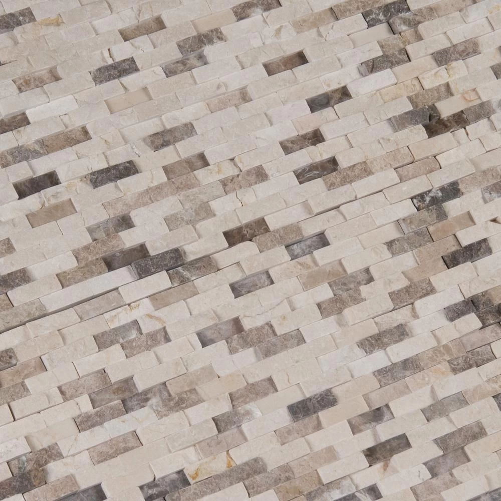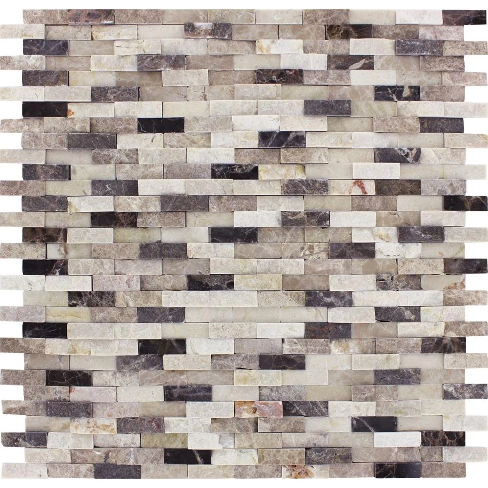 Use the MSI Inc Emperador Blend 12 in. x 12 in. Split face Mosaic Wall Tile for your next installation or renovation project to incorporate a contemporary aesthetic into your decor. This attractive tile features a seemingly random arrangement of tile strips on a 12 in. x 12 in. mesh sheet that makes installation a much easier process. A neutral blend of tan and brown tones create a stylish complement for a wide variety of design schemes. This tile is constructed from durable marble material and is ideal for a variety of wall applications. Note: Inspect all tiles before installation. Natural stone products inherently lack uniformity and are subject to variation in color, shade, finish, etc. It is recommended to blend tiles from different boxes when installing. Natural stones may be characterized by dry seams and pits that are often filled. The filling can work its way out and it may be necessary to refill these voids as part of a normal maintenance procedure. All natural stone products should be sealed with a penetrating sealer.