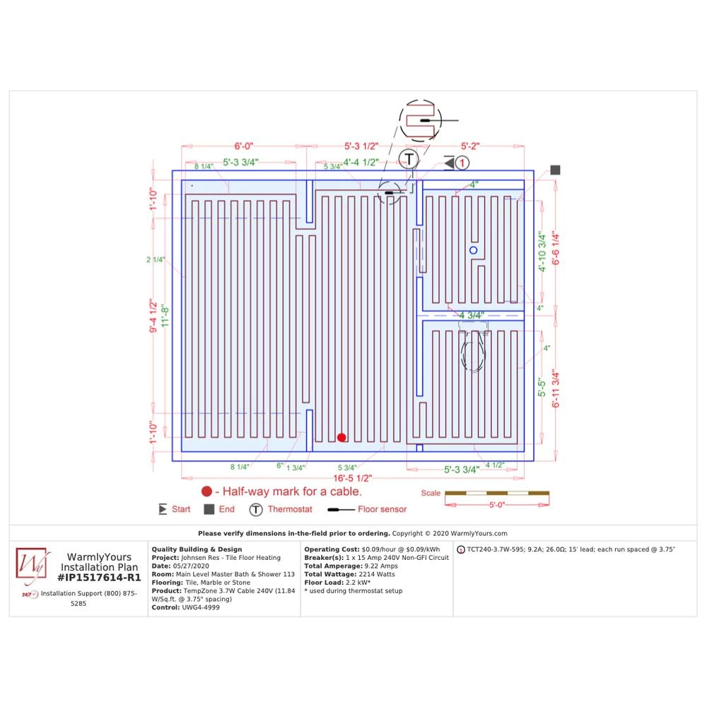 - Includes 595 ft. TempZone heating cable (153 sq. ft. – 204 sq. ft.), 240 sq. ft. – Volt